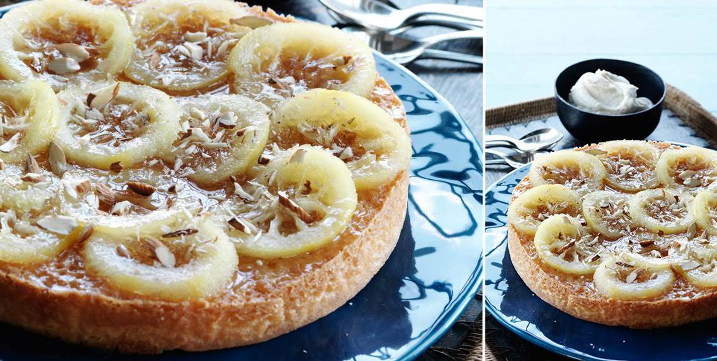 6. Læg citronskiverne på den afkølede kage, og hæld siruppen over.