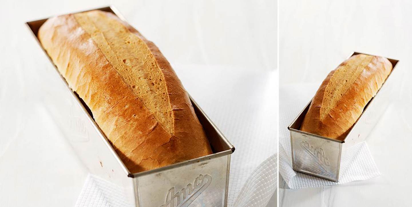 6. Rids brødet med en skarp kniv og pensl det med mælk eller vand. Sæt brødet nederst i den varme ovn og bag det 25-30 minutter.